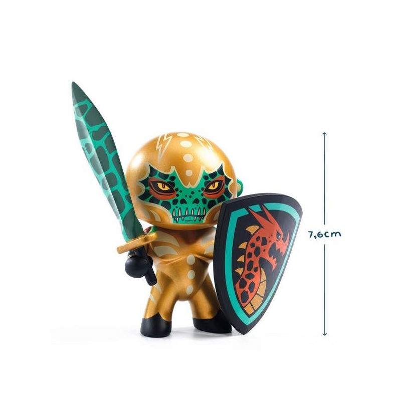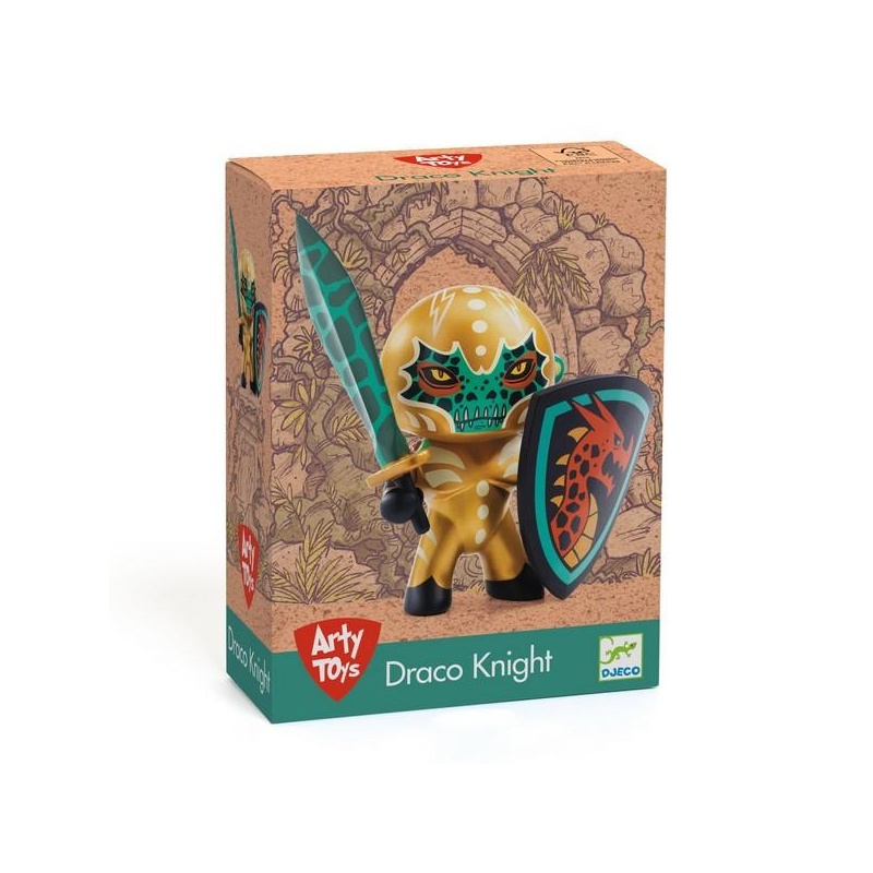 With his ferocious stare, pointy teeth, sword and shield emblazoned with a dragon, Draco Knight is a merciless knight with a fiery temper. Get too close and risk being burned! Inspired by the Art Toys trend, our Arty Toys figurines have been designed by artists from all walks of life, with each illustrator and designer bringing their own original touch to each character. Action figures that you can display, collect or make the centre of fantastic tales and adventures! Contents: 1 figurine + 2 accessories. Character with poseable arms and head, supplied with one accessory. Collectibles for playing with and displaying. For fans of knight stories. Suitable from 4 years. Warning! Not suitable for children under three years, choking hazard due to small parts.