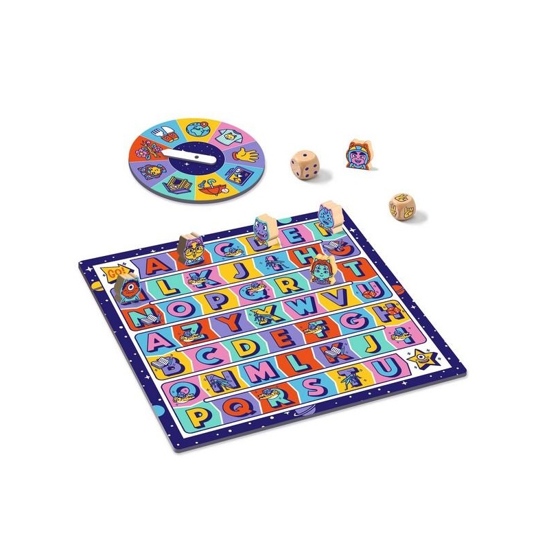 Mäng, mis aitab laiendada teie sõnavara. Kaks mängureeglite komplekti kahe raskusastme jaoks. Mäng 2-6 mängijale. Komplekti kuulub noolega ketas, kaks puidust täringut, mängulaud ja kuus puidust nuppu.