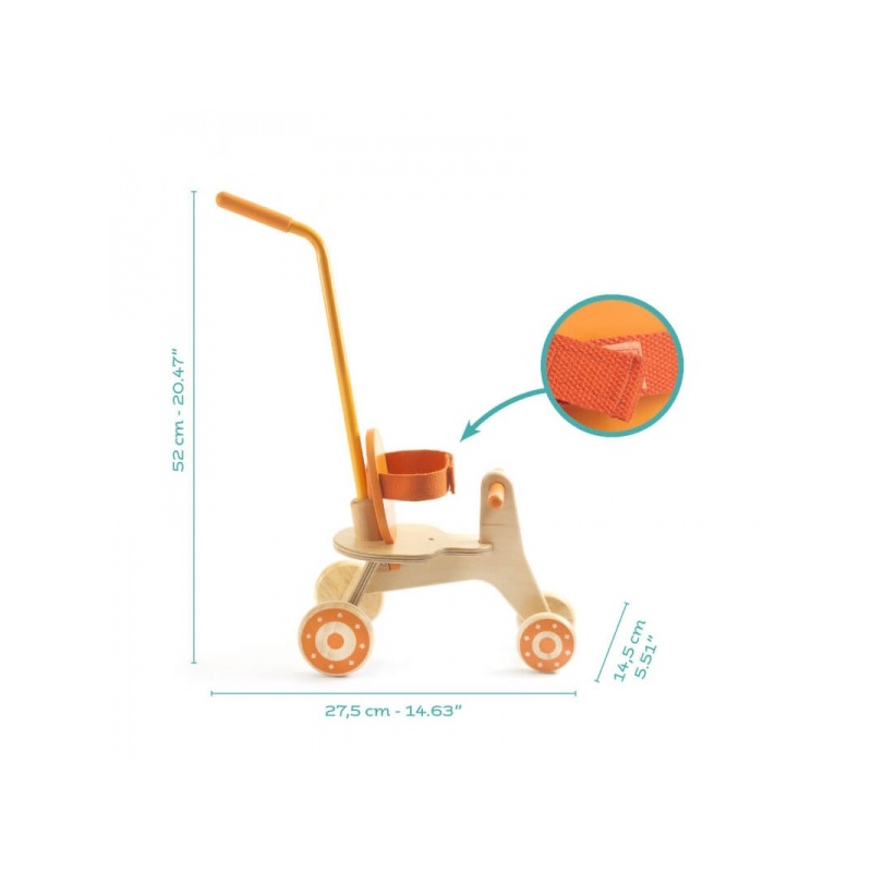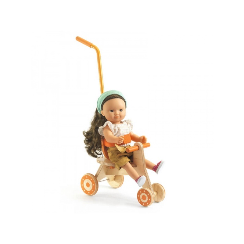 Väikesele nukule mõeldud kolmerattaline ratas! Reguleeritava Velcro® rihmaga saab nuku turvaliselt kinnitada ja viia jalutuskäigule tuppa või õue. Komplektis on puidust kolmerattaline ratas, metallist käepide ja tugev vöö. Sobib nukkudele pikkusega 30–36 cm. Alates 2. eluaastast.