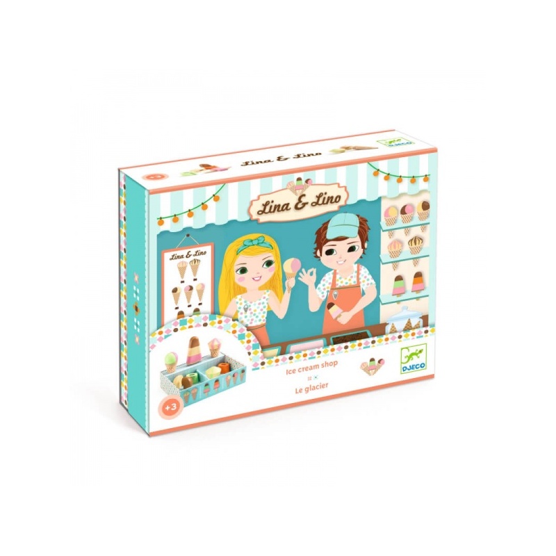 Lina & Lino on stiilne uus jäätisebaar, mis toob lasteni Itaalia suvised maitsed ja mängurõõmu! Kauni puidust karbi abil saavad lapsed valmistada ja serveerida erinevaid jäätiseid – olgu selleks sidruni-šokolaadi koonus, maasika-vanilli koonus või värviline kolme maitsega jäätisepulk.