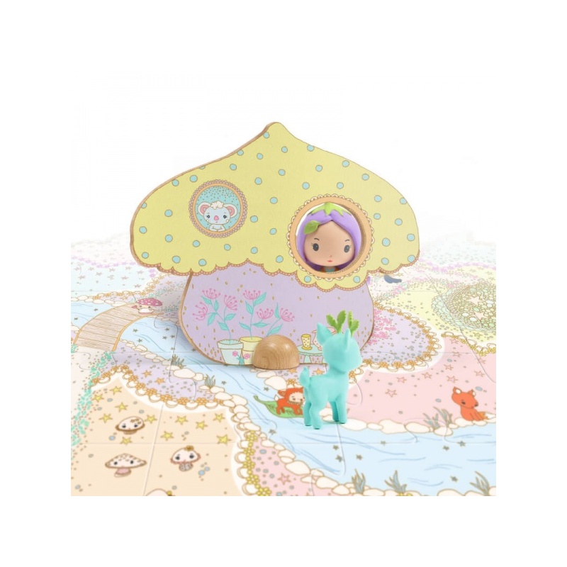 Komplektis on 24 suurt pusletükki ning 9 vertikaalset osa, sealhulgas lillekaar, kaks seenekujulist maja, põõsas ja viidad. Õrnad toonid ja kaunid detailid loovad Tinyly võlumaailma, kus haldjas Lily ja tema ustav kaaslane, metskits Polo, seiklevad imelises keskkonnas. Maagiline jõgi lisab stseenile rahu ja lummust. Figuurid on liigutatavad ning sobivad nii mängimiseks kui kogumiseks. Komplekt sisaldab ka figuuri (Lily) ja kaaslast (Polo). Tükid on valmistatud vastupidavast ja tugevast papist ning neid on lihtne kokku panna.